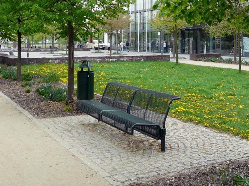 Stahlbänke in der Allee